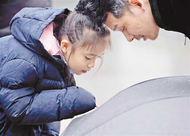 市民在南岸區(qū)南山觀察落在雨傘上的雪花。記者 謝智強 實習生 熊香琳 攝/視覺重慶