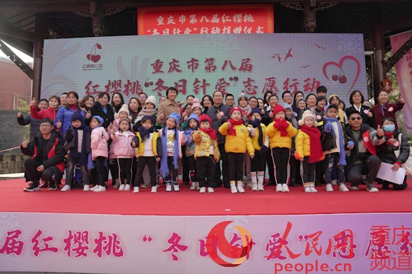 人民網(wǎng)重慶1月15日電(陳琦、黃軍) 你織毛衣、我打手套、她縫帽子……一年中最冷的時(shí)候,迎來最暖心的愛。1月14日,重慶市第八屆紅櫻桃“冬日針愛”志愿行動捐贈儀式在渝中區(qū)七星崗?fù)ㄟh(yuǎn)門城墻公園舉行,為高寒凝凍山區(qū)留守兒童、困境兒童送去溫暖。