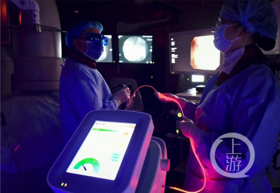 “這是一種全新的治療方式,此前在重慶還沒(méi)有利用光動(dòng)力施行過(guò)膽管壺腹周圍癌的治療。這對(duì)我們醫(yī)院來(lái)說(shuō)是首次,對(duì)重慶來(lái)說(shuō)也是首次。”