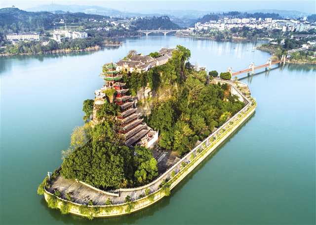 石寶鎮(zhèn)除忠文化公園外,還新建起一座旅游休閑公園。在這座面積達(dá)3萬(wàn)平方米的公園里,正在逐步完善相關(guān)的景觀景點(diǎn)。站在已經(jīng)建好的觀景亭,可以觀賞到江上的大盆景石寶寨全貌和江對(duì)岸的西沱古鎮(zhèn)。