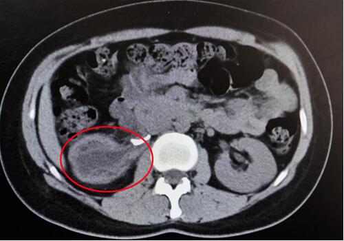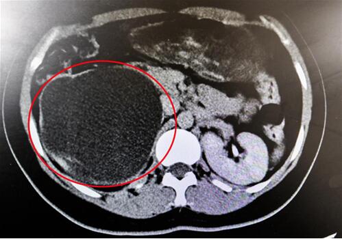 紅圈部分為手術(shù)前腎積水情況。院方供圖