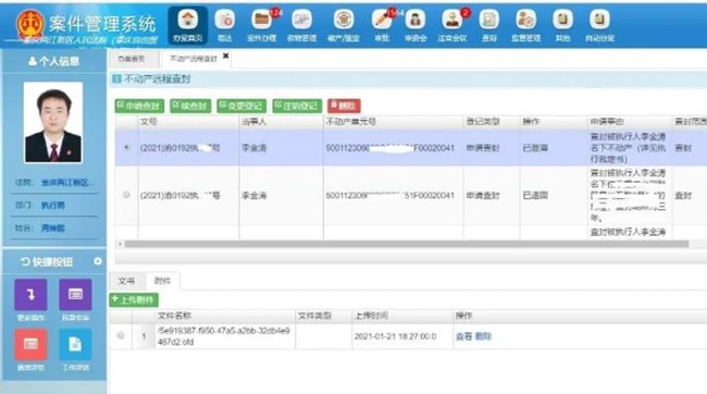 執(zhí)行人員線上查封不動(dòng)產(chǎn)。 電腦截屏