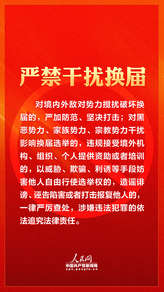 從2021年開(kāi)始,地方各級(jí)領(lǐng)導(dǎo)班子將陸續(xù)進(jìn)行換屆。今年1月,中共中央紀(jì)委機(jī)關(guān)、中共中央組織部、國(guó)家監(jiān)察委員會(huì)聯(lián)合印發(fā)了《關(guān)于嚴(yán)肅換屆紀(jì)律加強(qiáng)換屆風(fēng)氣監(jiān)督的通知》。其中,在嚴(yán)明換屆紀(jì)律方面,《關(guān)于嚴(yán)肅換屆紀(jì)律加強(qiáng)換屆風(fēng)氣監(jiān)督的通知》提出了十個(gè)“嚴(yán)禁”。人民網(wǎng)·中國(guó)共產(chǎn)黨新聞網(wǎng)帶您速覽。