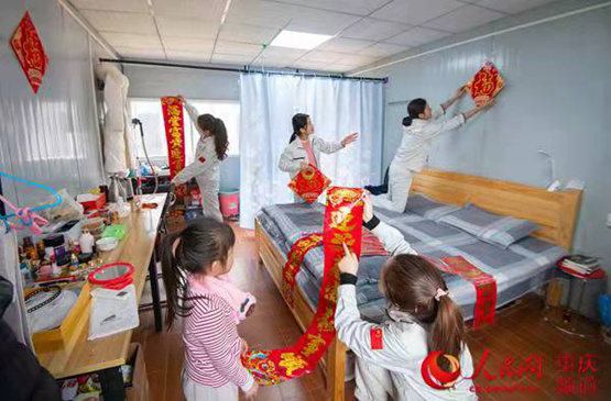 人民網(wǎng)重慶2月2日電 1日,萬州高速環(huán)線鹿山互通中交一公局四分部員工宿舍里,員工劉夢和孫曉莉忙著張羅年貨、貼春聯(lián),年關(guān)將至,年味彌漫。