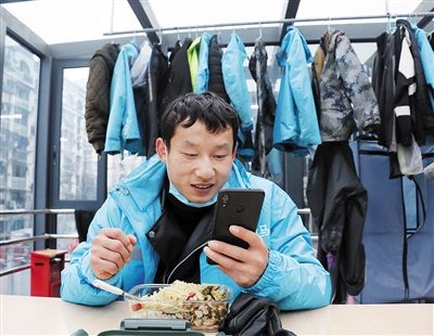 胡世軍利用午休吃飯時間和家人視頻通話。