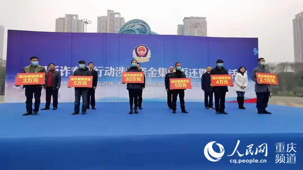 人民網(wǎng)重慶2月4日電 2月4日下午,合川區(qū)公安局舉辦全民反詐專項(xiàng)行動(dòng)涉案資金集中返還活動(dòng),現(xiàn)場(chǎng)返還涉案資金49.1萬元。