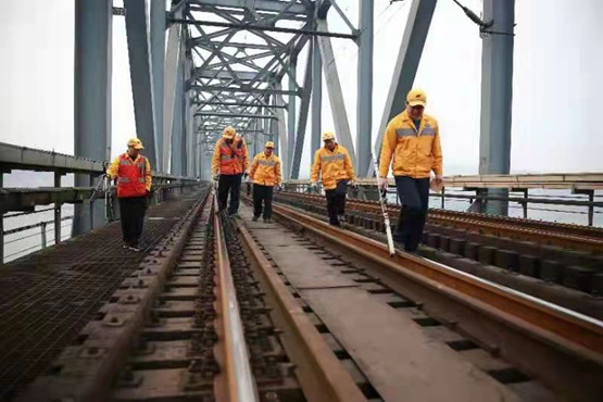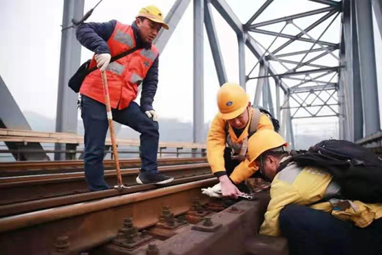 “平時我們每月都通過上橋梁、下橋墩等方式對大橋進行一個全面的‘體檢’,春運期間,每天都有70余趟旅客列車及重載貨物列車從大橋通過,通行量比平時大,所以我們安排節(jié)前專項檢查,加強鐵路線路巡檢和鋼梁體的巡檢,全力確;疖嚢踩ㄐ!蓖躏w一邊收拾檢查工具,一邊沿著橋梁兩側狹窄的檢查梯爬上鋼梁頂部。