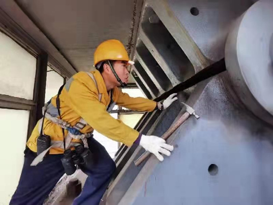 要下到橋墩頂面,要先后通過兩個直立的檢查梯和一條斜度約45度的狹窄通道,眼下是深不見底的長江,普通人往下看一眼心里就直冒汗。走在上面時,橋上不時有火車通過,產(chǎn)生的強烈震動讓人心驚膽顫,雙腿不停地顫抖,王飛和他的同事不僅要在狹窄的通道行走,還要檢查每顆連接螺栓的工作狀態(tài),這不僅需要過人的眼力,還需要豐富的經(jīng)驗,每一步都充滿危險和挑戰(zhàn)。已經(jīng)擁有8年工作經(jīng)驗的王飛已經(jīng)熟練到通過檢查錘與連接螺栓的碰撞聲就能判斷其工作狀態(tài)。