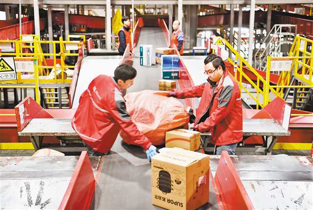 2月18日,京東亞洲一號(hào)重慶巴南物流園,分揀工作人員在自動(dòng)分揀線上忙碌。當(dāng)日,京東重慶物流園發(fā)出約30萬個(gè)包裹。記者 謝智強(qiáng) 攝/視覺重慶