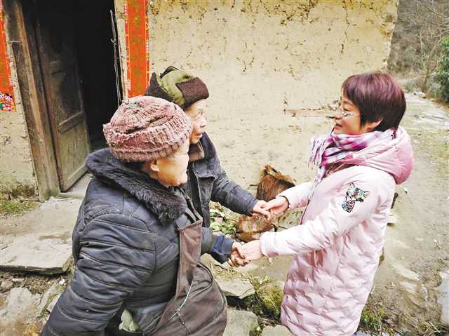 羅燕(右)到貧困群眾家走訪。(龍?zhí)镟l(xiāng)政府供圖)