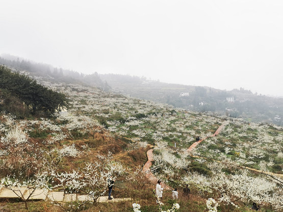 來墊江看萬畝李花綻放潔白如雪