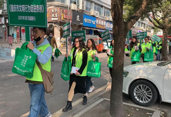 隨后,團(tuán)區(qū)委“河小青”青年志愿者在璧南河沿岸開展河道清理、《重慶市文明行為促進(jìn)條例》及垃圾分類常識(shí)宣傳活動(dòng)。本次活動(dòng)共有20余名“河小青”志愿者參與,共計(jì)發(fā)放宣傳資料和環(huán)保袋300余份。
