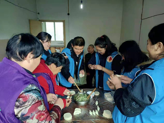 5日,先鋒新村小區(qū),志愿者們一早便趕到困難村民涂普明、劉剛的家里開(kāi)始忙活起來(lái),和面、切菜、拌餡兒、包餃子。當(dāng)吃著熱乎乎的餃子時(shí),涂普明、劉剛心里也暖暖的。