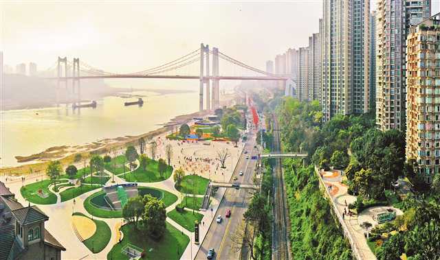三月四日,九濱路,九龍灘“兩江四岸”治理提升工程九龍灘濱江公園扮靚長(zhǎng)江江灘。特約攝影 鐘志兵\視覺重慶