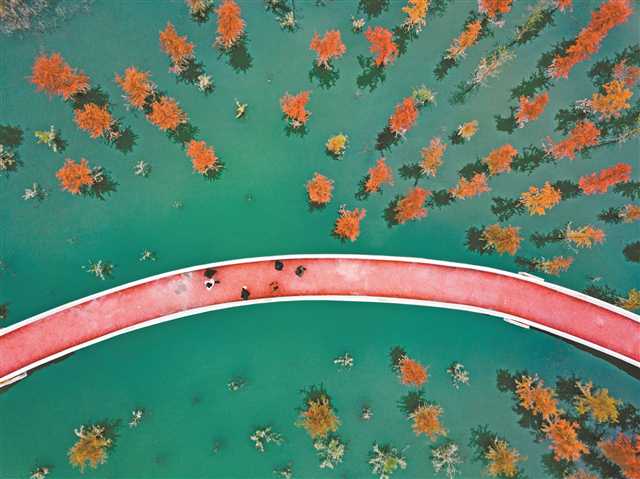 萬州區(qū)大周鎮(zhèn)十里濱江長廊,中山杉林顏色繽紛,形成了美麗的沿江風(fēng)景,不少游客慕名而來。(攝于2020年12月18日)記者 謝智強 攝/視覺重慶
