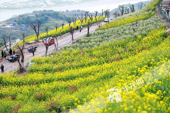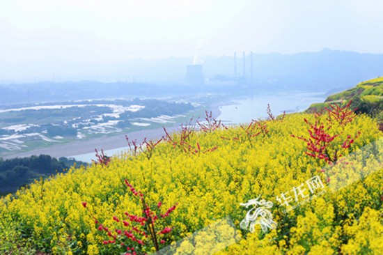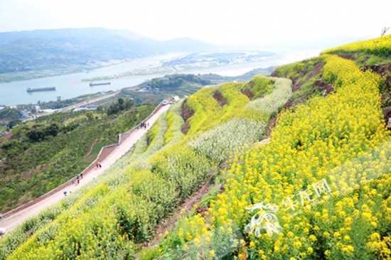 華龍網(wǎng)消息,三月陽春,正是賞花踏青好時(shí)節(jié)。3月11日,華龍網(wǎng)-新重慶客戶端記者來到大渡口區(qū)跳蹬鎮(zhèn)石盤村金鰲山,看見金燦燦的油菜花梯田與遠(yuǎn)處的江山船舶相輝映,猶如壯闊的畫卷,吸引了不少市民前來觀景賞花。