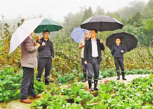 薛奉軍(右二)冒雨察看產(chǎn)業(yè)基地。(受訪者供圖)