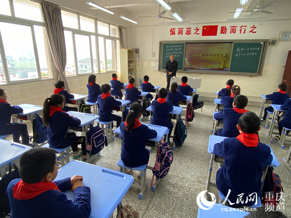 在不遠(yuǎn)處的大盛學(xué)校,69歲的馮明權(quán)走進(jìn)五年級課堂,開始講述他的黨史課。已從事教育工作40年的馮明權(quán),曾擔(dān)任過老師和校長,與學(xué)生的情緣頗為深厚。課堂上,他結(jié)合自身的經(jīng)歷,用3個故事,告訴學(xué)生們少先隊員如何“紅”起來、革命信念怎么“強”起來、基層責(zé)任怎樣“擔(dān)”起來。