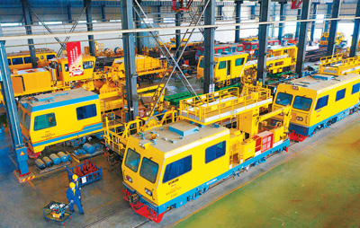 日前,湖北省襄陽市時瑞達重型工程機械有限公司加緊制造出口國外的鐵路配砟整形車。據(jù)了解,該公司目前的國際訂單已排產(chǎn)到明年5月。圖為公司生產(chǎn)車間。