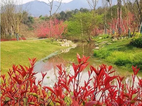 三板溪公園是以桃源、幽居為主題的開放式公園,步行在彩色步道上,低頭可觀清澈溪流,抬眼能賞美女櫻花開吐蕊。水清、花美、草綠,蜿蜒流動(dòng)的自然溪水,穿行而過,干凈清澈而又不斷流動(dòng),流水淙淙愜意綿綿。