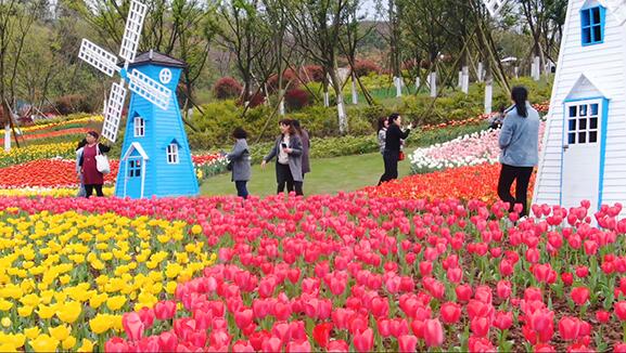 龍興新城內(nèi)30萬株郁金香競(jìng)相盛開。兩江協(xié)同創(chuàng)新區(qū)供圖