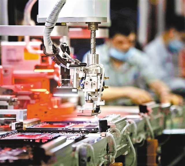 近年來,重慶高新區(qū)多舉措鼓勵企業(yè)建立研發(fā)機構(gòu),助力企業(yè)在技術(shù)創(chuàng)新中充分發(fā)揮主體作用,目前已建成市級以上企業(yè)研發(fā)機構(gòu)132個,去年規(guī)上工業(yè)企業(yè)研發(fā)投入超16億元。圖為2021年3月5日,在位于重慶高新區(qū)的重慶禾裕田精密電子有限公司,工作人員正在自主研發(fā)的筆電外殼自動組裝線作業(yè)。長期以來,該公司以產(chǎn)值的4%持續(xù)投入研發(fā),其占地約50畝的二期電子產(chǎn)品智能加工中心也將在年內(nèi)投用。