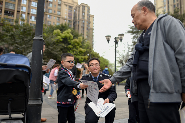 小朋友與民警一同宣傳反詐知識。南岸警方供圖