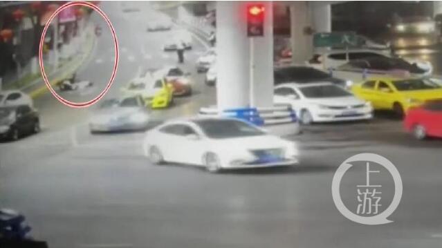 王某逃逸現(xiàn)場(chǎng)。視頻截圖。