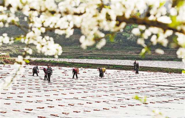 3月13日,南川區(qū)興隆鎮(zhèn)永福村,村民在藍莓地里忙碌。特約攝影 瞿明斌/視覺重慶