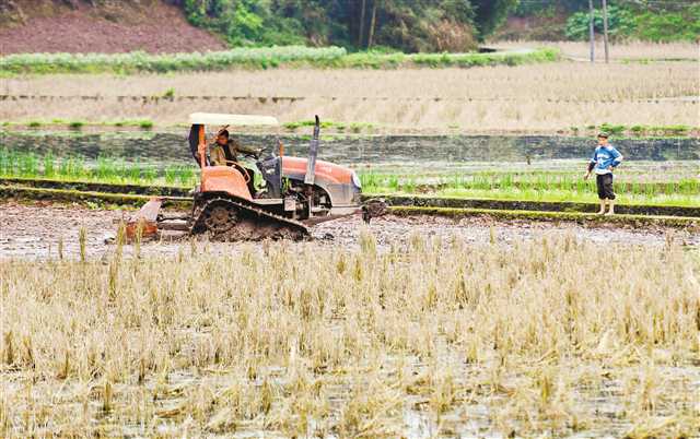 春日里,梁平區(qū)仁賢街道五一社區(qū)的田間地頭一派繁忙景象。伴著油菜花香,當?shù)卮迕耨{駛著大型耕田機在平整的水田間耕作,為種植水稻做準備。據介紹,隨著農機惠民補貼政策的落實和農村機械化程度的不斷加深,當?shù)夭簧俅迕襁x擇了省時、省工、省力的機械化耕作。