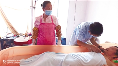 做這項(xiàng)工作已快三年的馮地華說(shuō):“別看洗澡是一件簡(jiǎn)單的事,可當(dāng)助浴師并不那么簡(jiǎn)單!