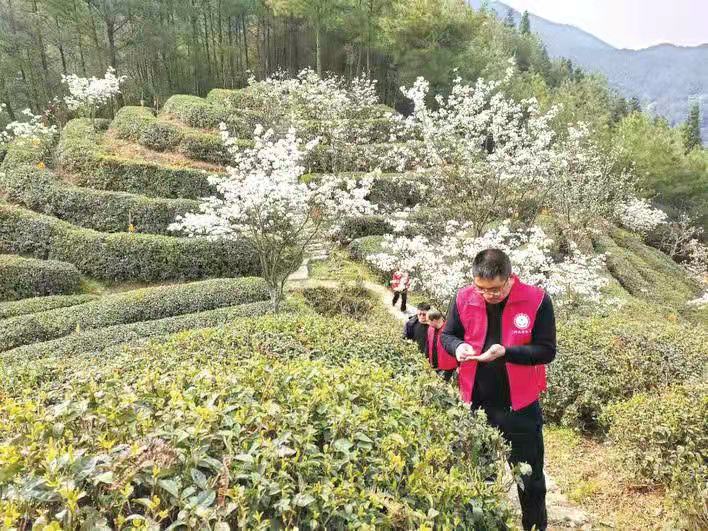 三月的青石村,花紅水暖。山腳下,房屋邊,漫山遍野一壟壟的茶樹成排延伸,與茶樹間穿梭的茶農(nóng)構(gòu)成了一幅美麗鄉(xiāng)村畫卷。