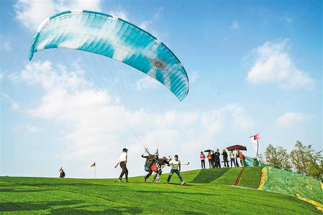 3月27日,游人在北碚區(qū)天府鎮(zhèn)斗鷹滑翔傘基地體驗滑翔樂趣。近年來,北碚區(qū)持續(xù)推進旅游+農(nóng)業(yè)發(fā)展,打造公園城區(qū),建設(shè)美麗鄉(xiāng)村,深化文旅融合,致力于把北碚建成“處處是風景、全城可休閑”的全域旅游大景區(qū),持續(xù)完善基礎(chǔ)設(shè)施配套,營造良好旅游發(fā)展環(huán)境,加快建設(shè)休閑度假目的地。特約攝影 秦廷富/視覺重慶