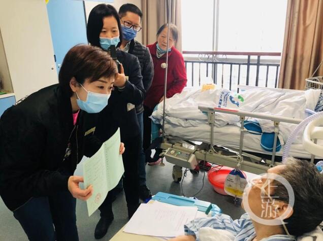 3月26日下午3時(shí)許,袁家崗重醫(yī)附一院一間病房?jī)?nèi)發(fā)生暖心一幕,重慶市不動(dòng)產(chǎn)登記中心工作人員佩戴工作牌、戴上口罩為患病臥床的一位老人家辦理房產(chǎn)過(guò)戶登記手續(xù)!澳銈?cè)诓》坷锎钇鹛厥夤衽_(tái),這樣的服務(wù)簡(jiǎn)直太暖心了!”