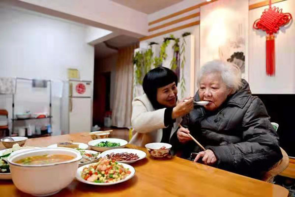向紅上門照顧離休干部胡曉如。九龍坡區(qū)融媒體中心供圖