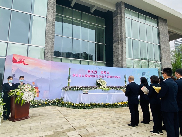 人民網(wǎng)重慶4月3日電 (胡虹)以環(huán)保公祭倡導(dǎo)文明新風(fēng),2日,重慶市石橋鋪殯儀館舉行“祭英烈 奠故人”清明環(huán)保公祭活動(dòng),呼吁大家文明祭掃,倡導(dǎo)綠色生態(tài)祭祀方式。