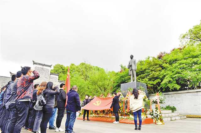4月2日,酉陽(yáng)土家族苗族自治縣桃花源旅游投資集團(tuán)公司黨員在趙世炎烈士故居重溫入黨誓詞,緬懷革命先烈,開(kāi)展黨史學(xué)習(xí)教育。通訊員 邱洪斌 攝/視覺(jué)重慶
