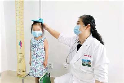 新橋醫(yī)院內(nèi)分泌科專家正在為孩子測(cè)量身高、進(jìn)行相關(guān)檢查。 (新橋醫(yī)院供圖)