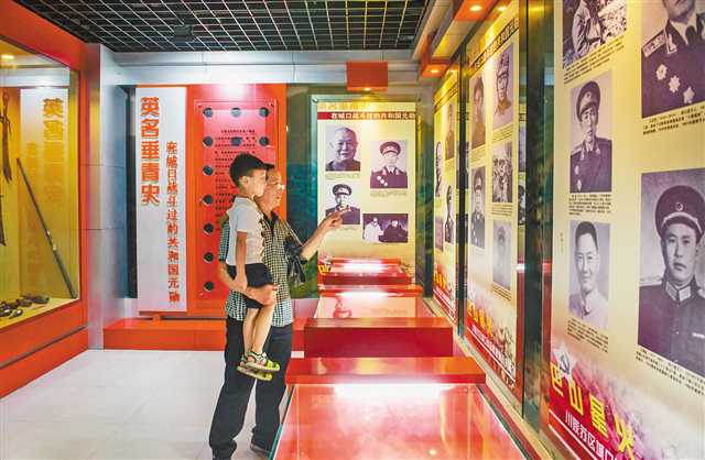 一位老人帶著孫子在城口縣的川陜蘇區(qū)城口紀(jì)念館參觀。(本報資料圖片)記者 齊嵐森 攝/視覺重慶