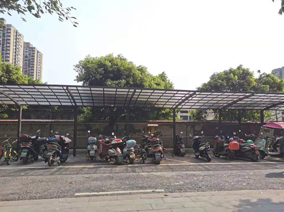 宏康浩宇小區(qū)內曾經隨意擺放的摩托車現(xiàn)在有了“家”。謝佳潔攝