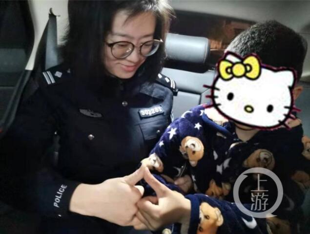 隨即,寸灘派出所民警張仕川、朱清泉趕赴黑石子碼頭,問啥孩子都低頭不語,看起來十分疲倦。擔心孩子受涼,民警將其帶上警車。充滿親和力的朱清泉充當起“臨時媽媽”,一直耐心地疏導其情緒,經(jīng)過二十多分鐘的安撫,小男孩向朱清泉說出了自己的名字,遺憾的是他沒有記住父母的電話。