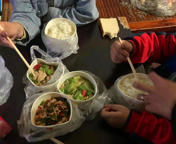 因擔(dān)心在家的兩個小孩,干警決定前往劉雪家探望劉霜和劉懵,干警到達(dá)后看見的第一個畫面就是兩個瘦小的孩子在昏暗的燈光下吃著泡面。看著兩個懂事的孩子,干警們十分心疼,立即又驅(qū)車前往鎮(zhèn)上為姐弟倆買了兩份飯菜。看著狼吞虎咽的兩個孩子,干警們心酸不已。