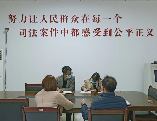 干警對劉雪父母進(jìn)行調(diào)解。開州區(qū)法院供圖