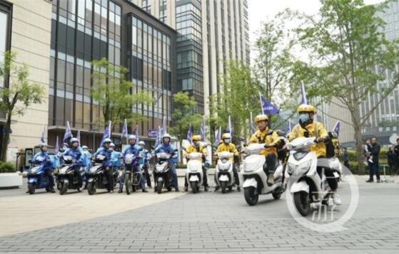 記者在現(xiàn)場(chǎng)看到,20名外賣小哥反詐宣傳志愿者團(tuán)隊(duì)代表精神抖擻,電動(dòng)車上“全民反詐志愿隊(duì)”隊(duì)旗迎風(fēng)飄揚(yáng)。“我們能在送餐的同時(shí)肩負(fù)這種責(zé)任,感覺很光榮、很自豪,我們一定不負(fù)使命,將反詐宣傳知識(shí)送到千家萬(wàn)戶!眮碜悦缊F(tuán)的外賣小哥陳瑜說。