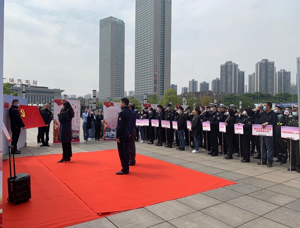 重慶火車北站地區(qū)綜合管理局黨史宣講活動(dòng)在火車北站北廣場(chǎng)舉行。郭姝彧攝