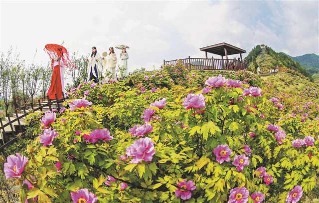 2020年3月23日,在墊江縣愷之峰旅游區(qū),漫山遍野的牡丹花進入盛花期,吸引了不少市民踏青賞花。特約攝影 向曉秋/視覺重慶
