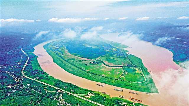 廣陽島生態(tài)修復(fù)有序推進(jìn),從空中俯瞰宛若鑲嵌在長江上的一顆綠色明珠。(攝于2020年7月14日)特約攝影 鐘志兵 攝/視覺重慶