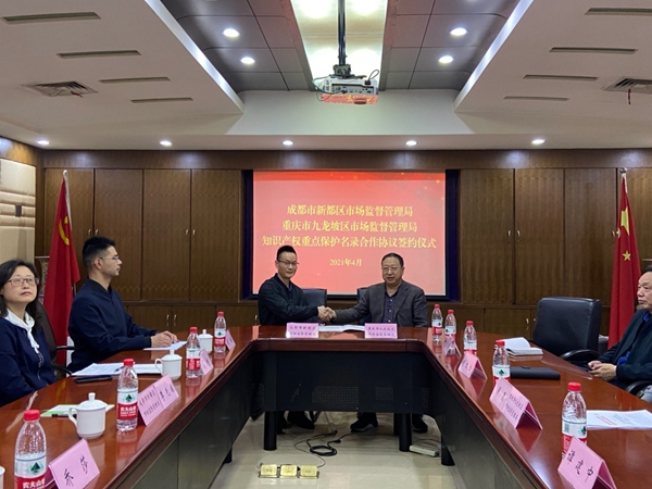 兩區(qū)市場監(jiān)管局簽訂《知識產(chǎn)權(quán)重點保護名錄協(xié)作協(xié)議》。重慶市九龍坡區(qū)市場監(jiān)管局供圖
