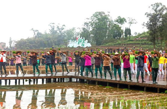 一聲高昂的“蒔秧”和著春耕舞曲,在歡愉的勞動(dòng)號(hào)子聲里,在現(xiàn)代機(jī)械插秧機(jī)的轟鳴聲中,一派蒔秧勞動(dòng)忙的景象在梁平大地上展開。新農(nóng)人晃動(dòng)著手里的秧苗,籮筐、籃子等農(nóng)具成為他們謳歌春耕的樂器,更是他們與大地情感連接的紐帶。