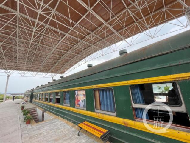 一邊是滔滔江水,一邊是長長的站臺,穿過月臺,來到會客廳,穿過走廊,然后來到臥室……這不是工業(yè)時代的總統(tǒng)專列,而是重慶市涪陵區(qū)紅酒小鎮(zhèn)正在打造的火車民宿。